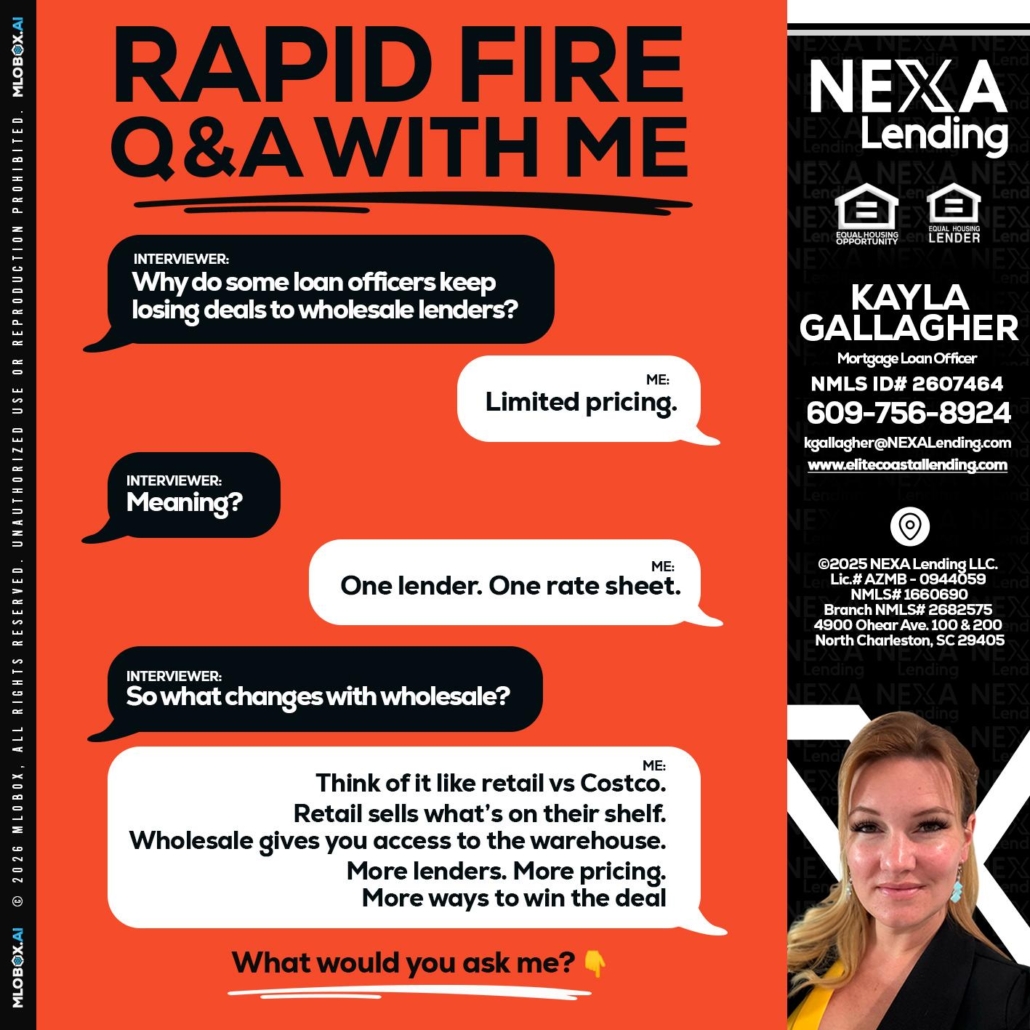 Q&A - Kayla Gallagher -Mortgage Loan OfficerHi, my name is Kayla Gallagher. I’m a Loan Officer with NEXA Lending LLC., offering personalized mortgage solutions, fast customized quotes, great rates and service with integrity.